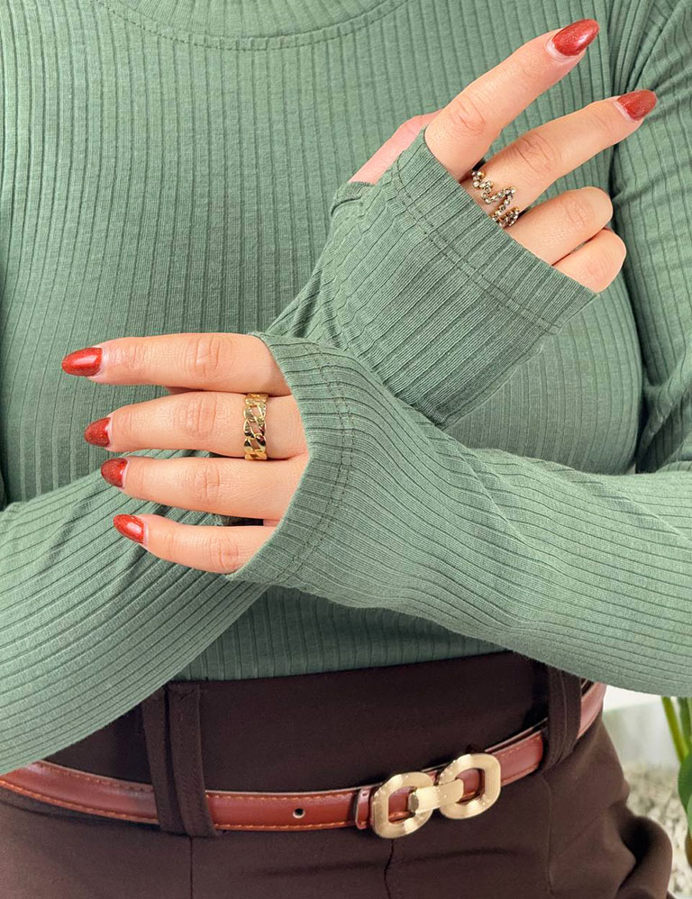 یکی از ویژگیهای دوستداشتنی و کاربردی این مدل، آستین فینگردار آن است که ضمن ایجاد ظاهری اسپرت، جوانپسند و مدرن، باعث میشود آستین ثابت بماند و هنگام استفاده روزمره یا فعالیت، حالت خود را از دست ندهد. فینگر علاوه بر زیبایی، برای فصلهای سرد زیر مانتو، کاپشن یا پلیور بسیار کارآمد است و فرم دست را کشیدهتر نشان میدهد.