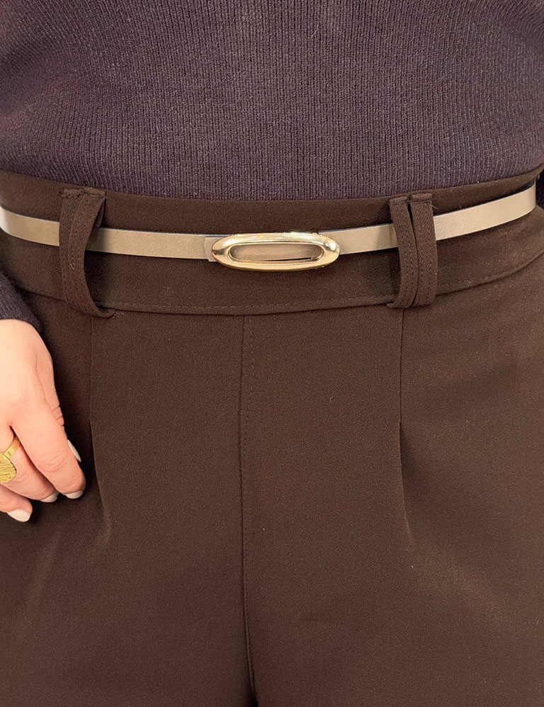 این کمربند با طول ۱۰۷ سانتیمتر قوارهای استاندارد دارد و برای بیشتر سایزها قابل استفاده است. بهراحتی میتوان آن را با شلوارهای پارچهای، جین، دامن و حتی روی مانتوهای ساده یا پیراهنهای کمردار استفاده کرد و استایلهایی کژوال شیک، مینیمال یا نیمهرسمی خلق نمود. به دلیل ظرافت در طراحی، این مدل برای افرادی با فرم اندامی مختلف مناسب بوده و بهویژه برای کسانی که تمایل دارند با یک اکسسوری ساده، خط کمر را مشخصتر کرده و تعادل بیشتری در استایل خود ایجاد کنند، انتخابی کاربردی و هوشمندانه محسوب میشود.